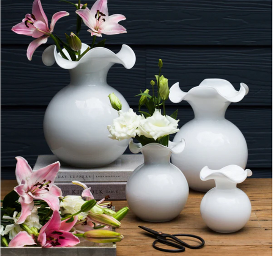 Vietri Hibiscus Glass White Medium Fluted Vase