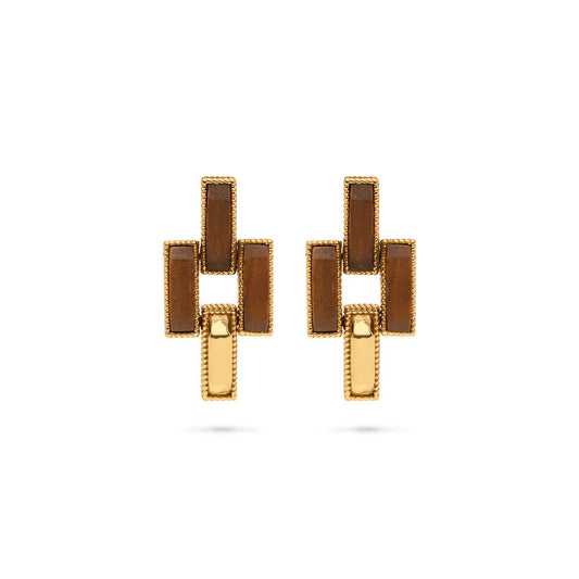 Capucine De Wulf Pathway Post Small Link Earrings- Teak/Gold