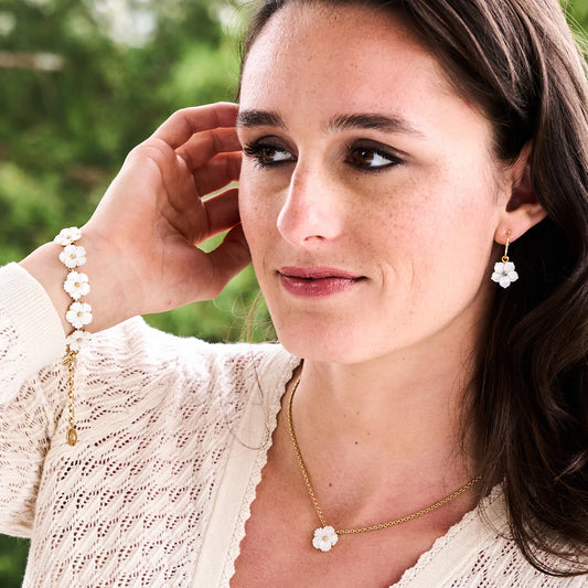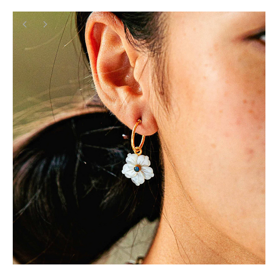 Capucine De Wulf Mermaid Garden Hoop Earrings with Flower Charm - MOP