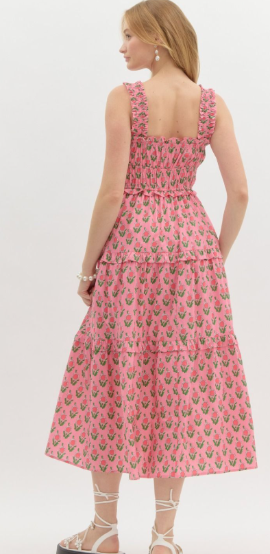 Entro Sunset Blooms Tiered Dress