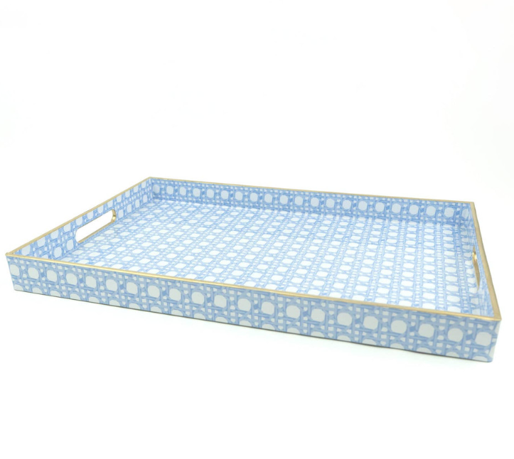 Our Blue and Green Cane Rectangular Tray brings elegance and classic style to any table. The beautiful blue design and eye-catching trellis pattern make this the perfect choice for any occasion - from outdoor parties to formal dinners. With two convenient side handles, you can easily transport snacks and drinks with ease. Treat yourself and your guests to high quality entertaining essentials like our Blue and Green Cane Rectangular Tray for stylish soirees every time. Spot clean recommended for a long-lasting piece that looks great in any space!