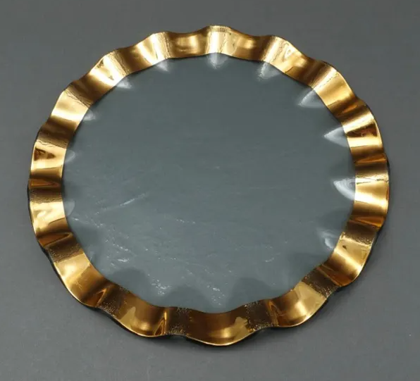 Annie Glass Gold Ruffle Buffet Plate Platter