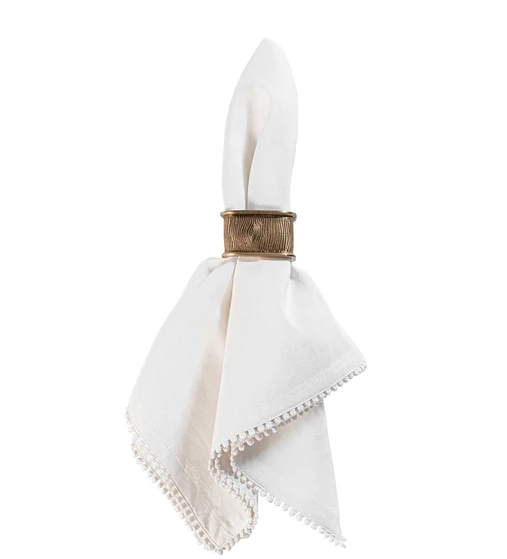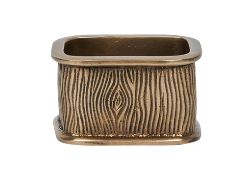 Elevate any setting with these striking brass napkin rings that are as stately as the mighty oak with their richly textural woodgrain motif.