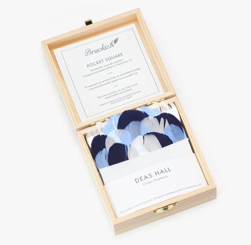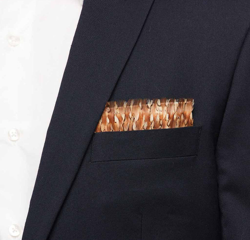 - Feathers for each pocket square are hand-selected, giving each piece a unique coloring.