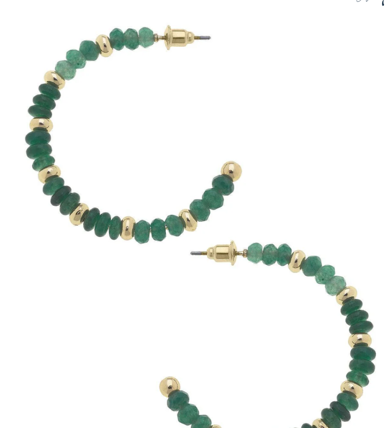 Canvas Hallie Semiprecious Beaded Hoop Earrings in Green