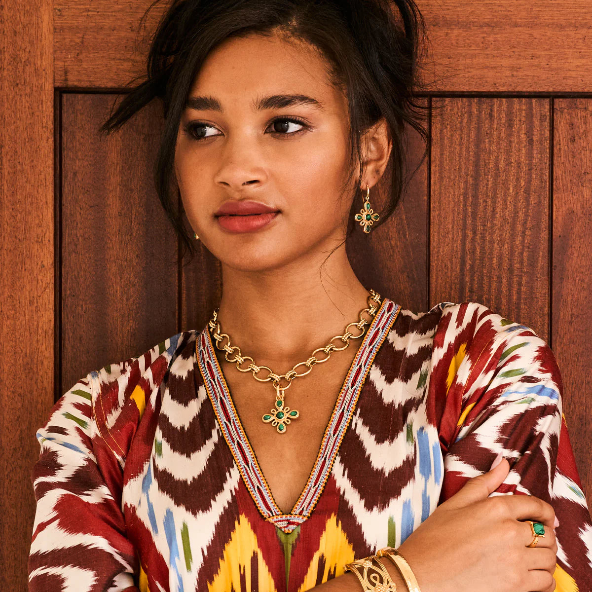 Malachite, 18K Gold over Brass with Anti-Tarnish Coating