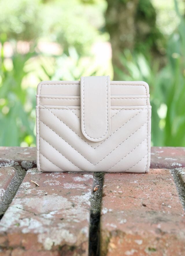 This wallet is functional and stylish! It has a soft quilted feel with a magnetic closure and features two card holders on the front and the back. There are four additional interior card slots as well as the gold stamped Caroline Hill logo. This is the perfect compact wallet to keep in your purse and to run errands with!
