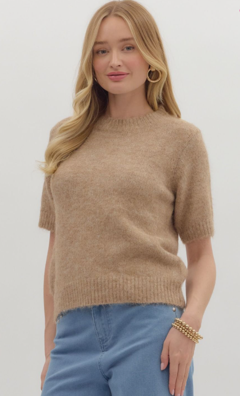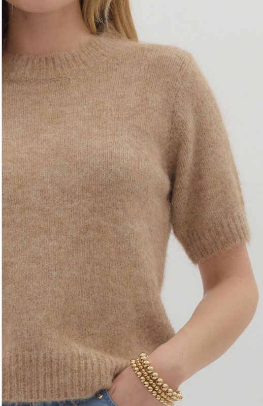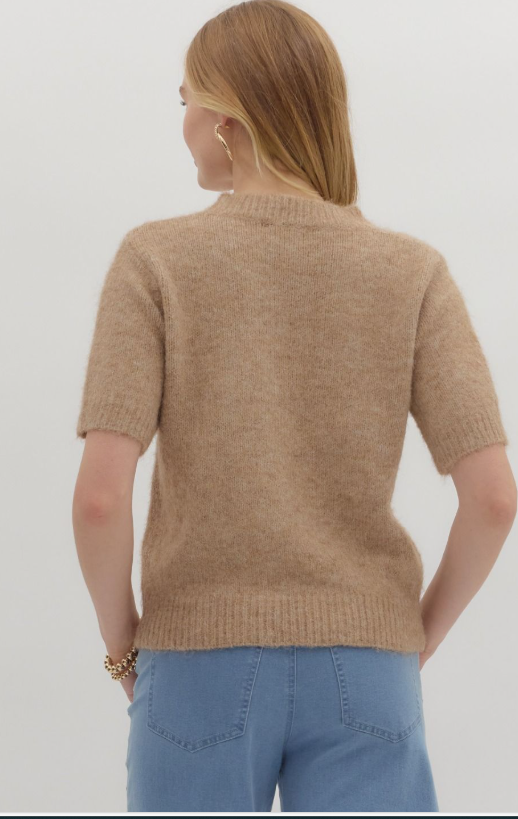 Solid short sleeve sweater knit top. Unlined. Knit. Non-sheer. Lightweight.