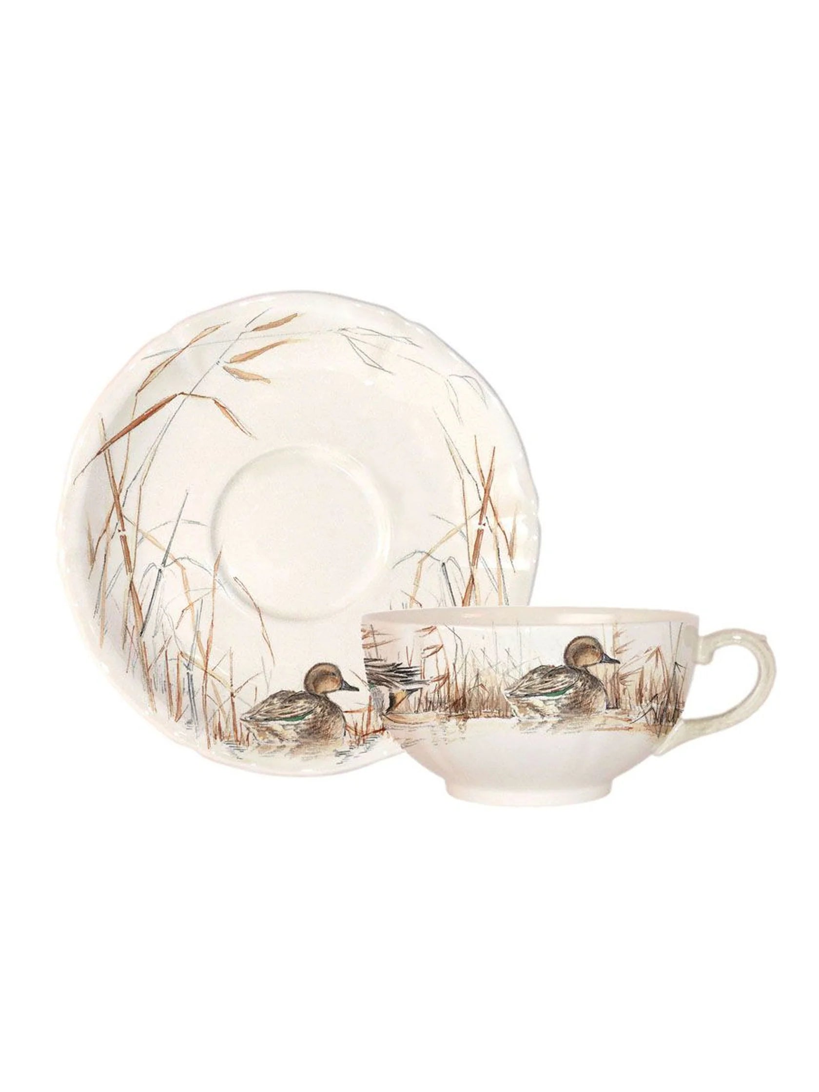 This Gien Sologne Duck Teacup & Saucer features a charming duck design, adding a touch of nature to your teatime. Made with high-quality materials, this teacup and saucer set is both durable and elegant. Perfect for enjoying a warm cup of tea in style.