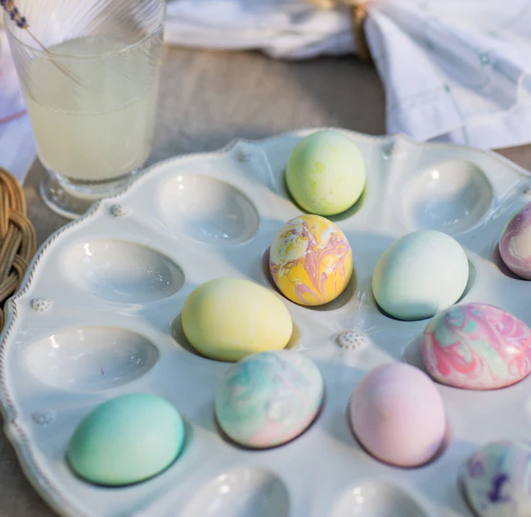 From our Berry & Thread Collection - Display your Deviled Eggs in this platter that boasts a scalloped rim replete with our rustic thread and berry motif, and take it to your next potluck.