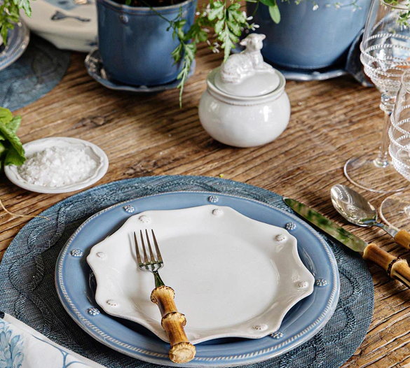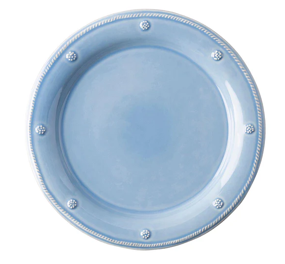From our Berry & Thread Collection - Rimmed with a simple thread and adorned with a sprinkling of berries, this iconic dinnerware collection embraces historic motifs in a sublime blue hue. This casually elegant dinner plate is divinely versatile and infuses your table with everyday sophistication.
