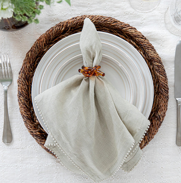 This decidedly chic napkin accessorizes any table setting with that perfect balance of casual-meets-impeccable that French aunties have been effortlessly achieving forever. The cotton/linen blend is textural and elegant, while the hand-knotted trim lends subtle flair. One can never have enough of these versatile linens on hand, for everything from midweek takeout to your most formal occasions.