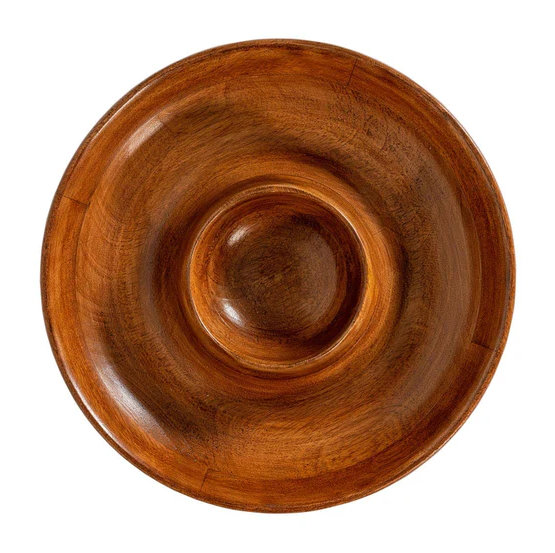 Elevate your chip and dip game to something more special with this hand-turned mango wood server that exudes natural beauty and casual elegance. A staple-piece for any entertaining enthusiast to keep on hand to serve a crowd with style, from holiday gatherings to family game night.