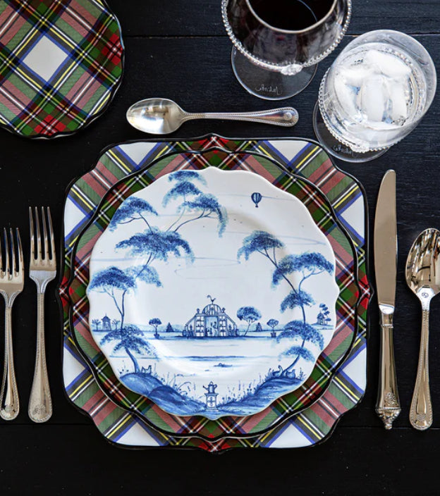 From our Country Estate Collection- The Conservatory is a serene place of growth and nurturing, reminding us to spend time with loved ones over al fresco summertime lunches. Our scalloped plate pairs superbly with long conversations and perfumed salads plucked from the herb garden. Or for a solitary respite, spend an afternoon penning sonnets in the Reading Pavilion with a slice of spiced chocolate cake. Featuring: Conservatory, Reading Pavilion, Hen House, and Balloon