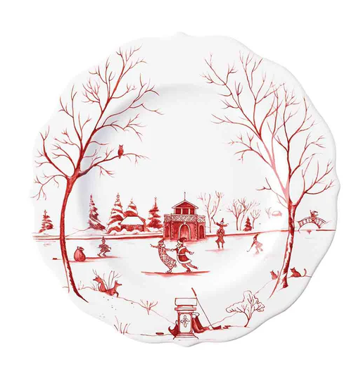From our Country Estate Collection - Playful woodland animals and cheerful skaters beckon you into our dreamy winter landscape. Adorned with our rich Ruby scenes.