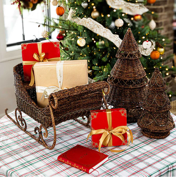 Decorate tables, shelves, and fireplace mantels with a beautifully hand-woven tree—a chic spin on the traditional evergreen. This fabulously unique decorating piece infuses natural texture and warmth to any space and is especially striking when clustered with various sizes to create a festive forest that lasts all season long.
