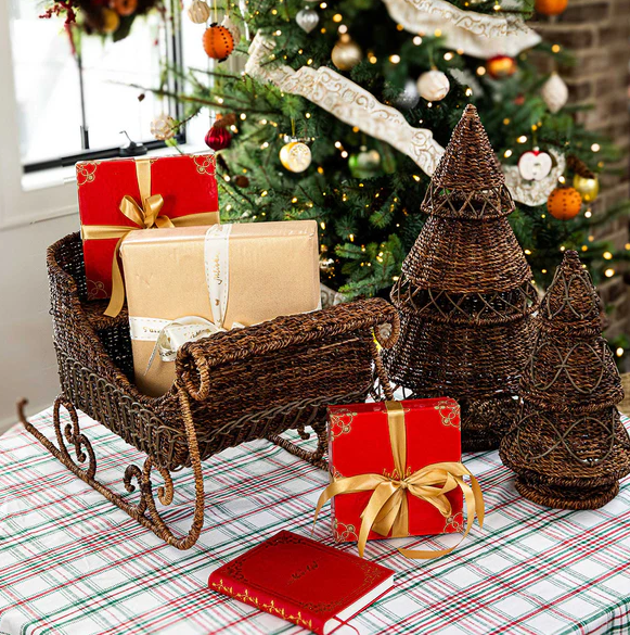 What will you fill your sleigh with? From sweets to festive baubles or a merry flower arrangement, this beautifully hand-woven sleigh delivers whimsy wherever you place it. Equally natural and neutral, rustic and elegant—it is a yuletide decorating piece you will adore unpacking and displaying year after year.