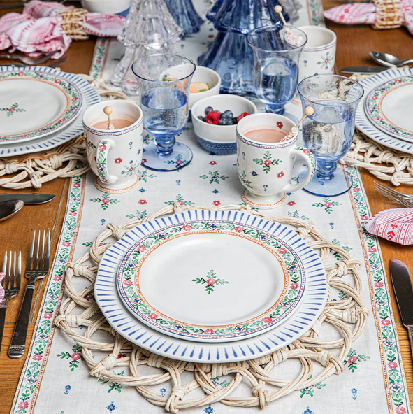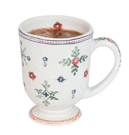 The intricate, painterly motif of folkloric Alpine wildflowers makes every coffee, tea, hot chocolate (and hot toddy) feel special, as if plucked from a cupboard in a storybook. With a tiny trim of polka dots lining the top and bottom—and a sprinkling of blossoms within—this mug is brimming with charm and coziness.
