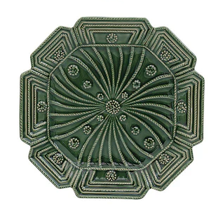 Lavish detailing of our iconic berries and threads on majestic shapes herald this party plate set. Each plate pays homage to four of the world’s most beautiful gardens—Landriana in Italy, Villandry in France, Alcazar in Spain, and Heligan in England—and is dressed up in a deep verdant green glaze.