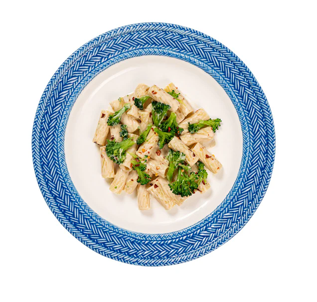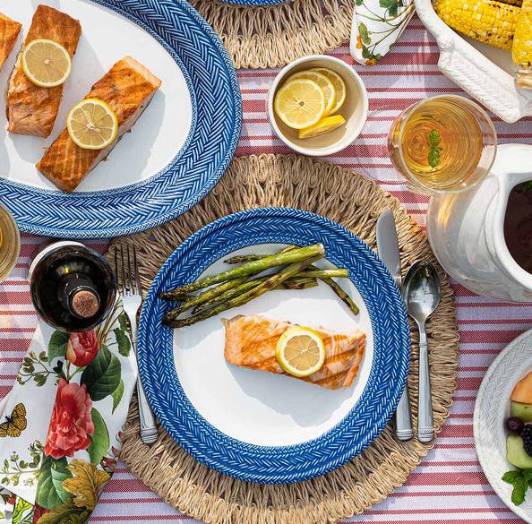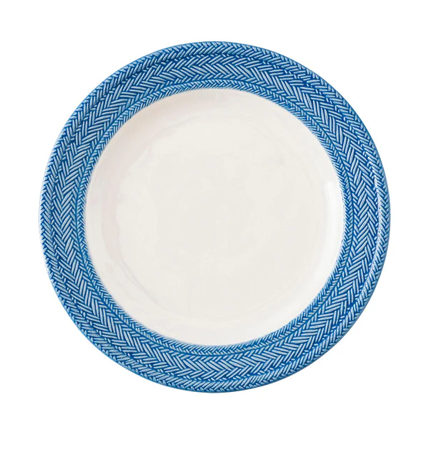 From our Le Panier Collection- Inspired by the French basket weave often found in equestrian and nautical traditions, the border is beautifully hand-painted in a windswept Delft Blue or Grey Mist.