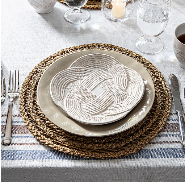 Natural abaca fibers are handwoven to create this chic placemat that brings textural warmth and easy elegance to table settings.