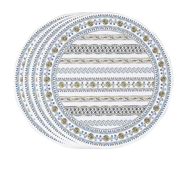 Inspired by our meanderings through the ancient streets of Seville where we fell in love with the city's folkloric floral motifs, we created this charming stripe in the refreshing and tranquil colors of the Spanish countryside. This set of four cork-backed placemats are blissfully wipeable for easy cleanup and designed to layer, mix and match.