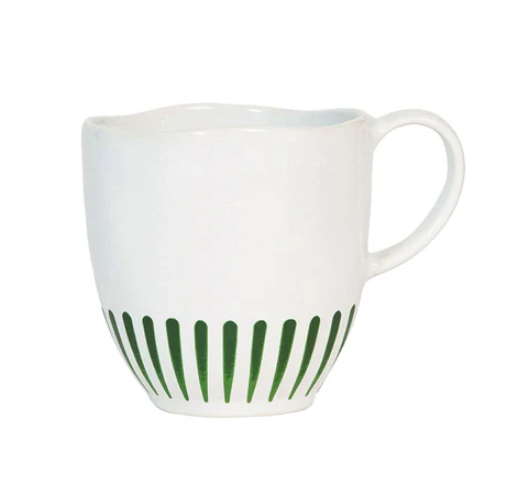 The fresh whitewash glaze and Basil green stripes of this versatile mug exude potter's wheel charm you'll reach for time and time again, from morning coffee to tea and a good book.
