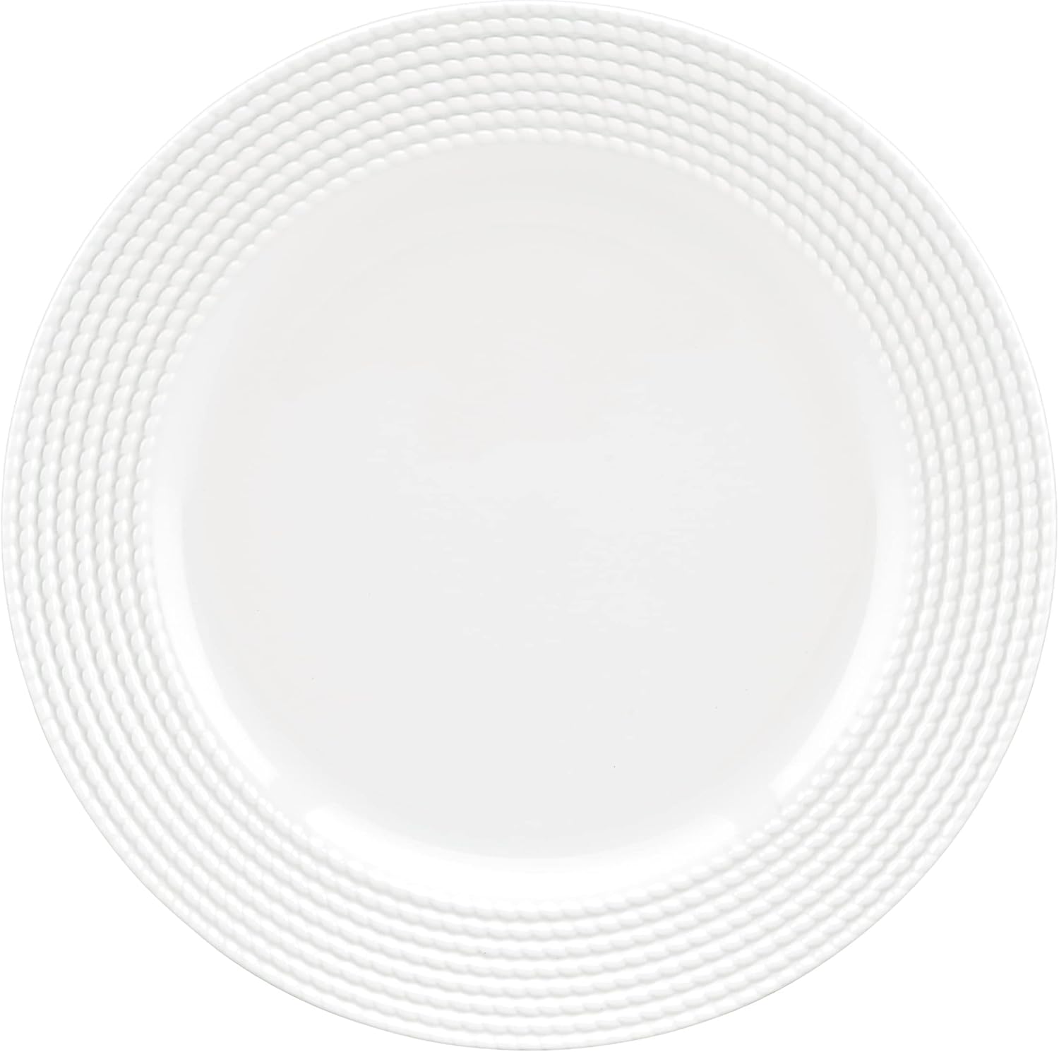 This Wickford plate ties in timeless sophistication with every meal. Versatile white porcelain in a clean, contemporary shape is embossed with a twisting rope pattern.