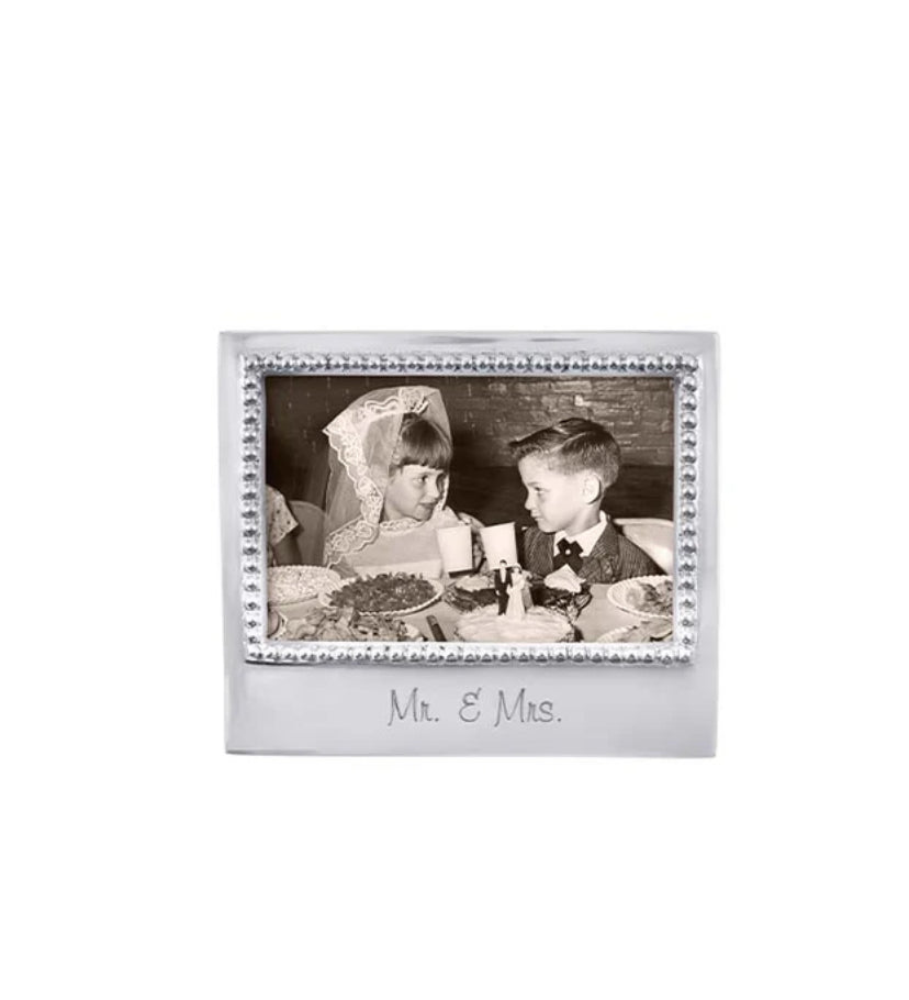 Celebrate the newlyweds with this adorable "Mr. & Mrs." Frame handcrafted from 100% recycled aluminum. Holds a 4 x 6 photo.