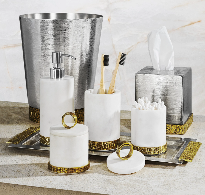 The Palm Collection is inspired by the beauty of a windswept palm tree and the perfectly imperfect shapes of woven palm leaves and fallen fronds. The warm antique gold finish and the intricate sculpted textures exude comfortable luxury and graciousness.