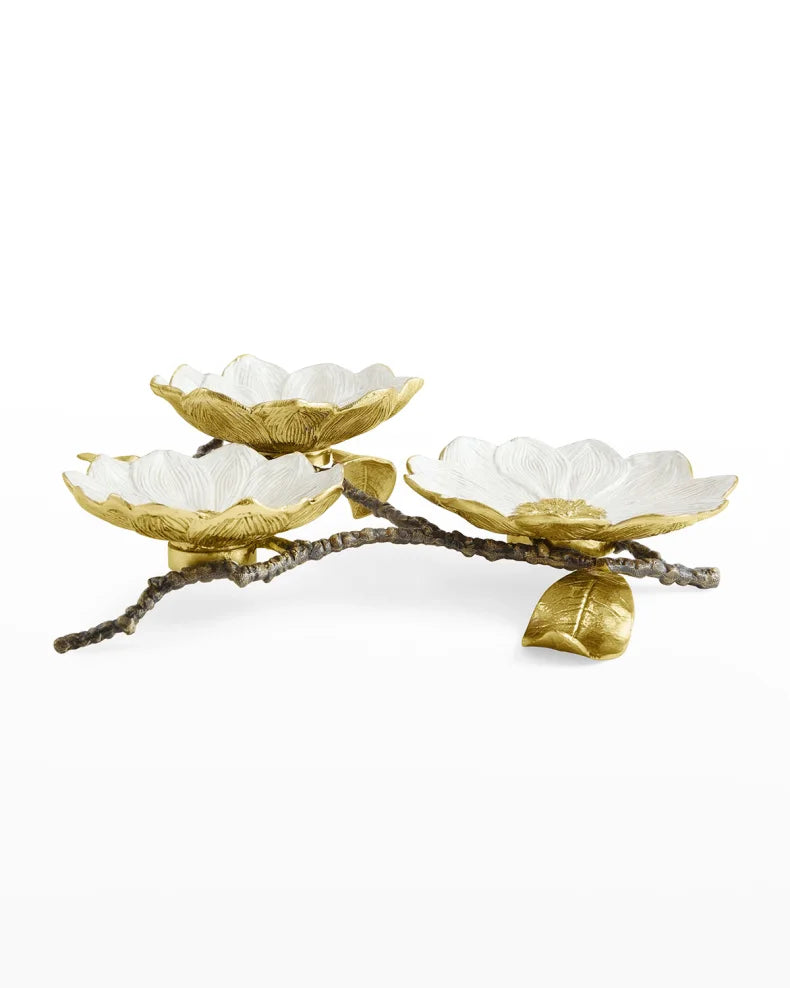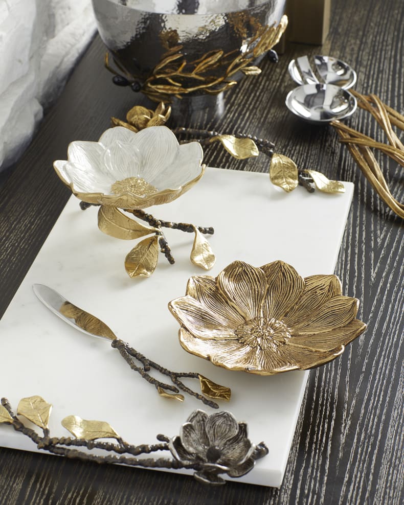 American artist Michael Aram studied art in New York in the late 1980s before traveling to India on an inspirational journey, where he discovered a rich metalworking tradition that inspired his turn toward handcrafted design. Michael Aram established a home and workshop in New Delhi, where he began crafting objects ranging from tableware to furniture, all of which reflect the hand of the artisan. The tension of line, form, and meaning is a distinguishing characteristic of Aram's extraordinary designs, inspiring thoughtful appreciation and bringing a sense of ceremony in their day-to-day use. Each Michael Aram piece is handmade, so no two items are exactly alike.
