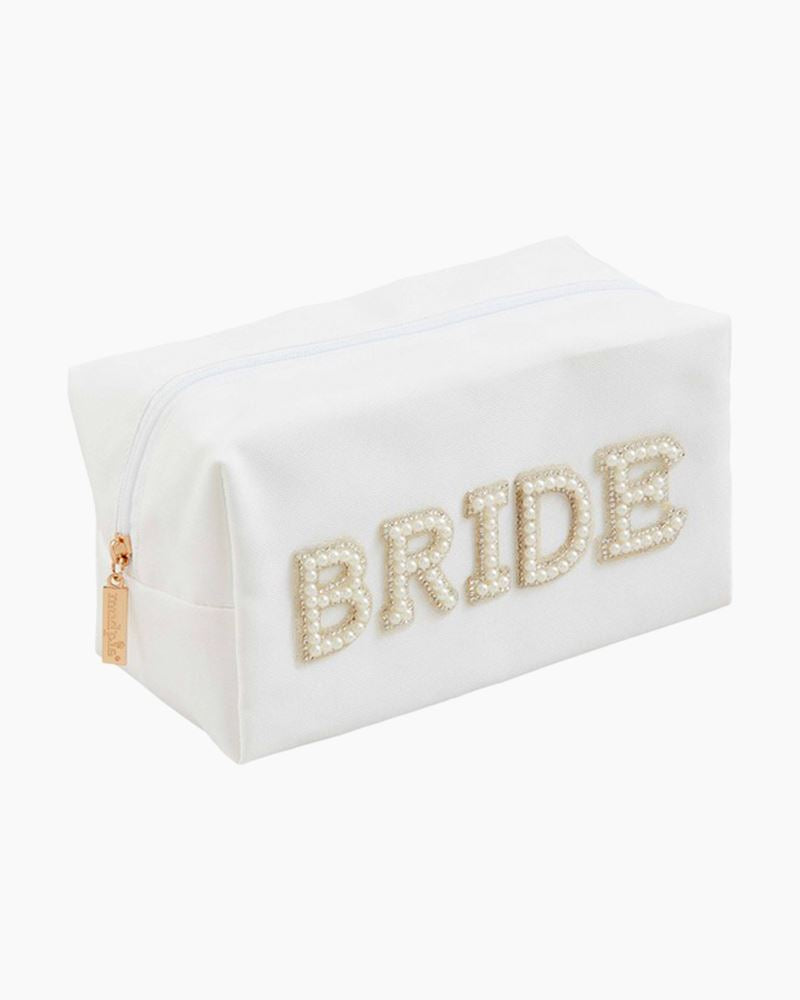 The Mudpie Bride Pearl Patch Case is a must-have for any wedding party. This makeup bag features a beautiful pearl patch and is the perfect way to keep all your essentials organized on the big day. Made with high-quality mudpie material, this case is both functional and stylish.