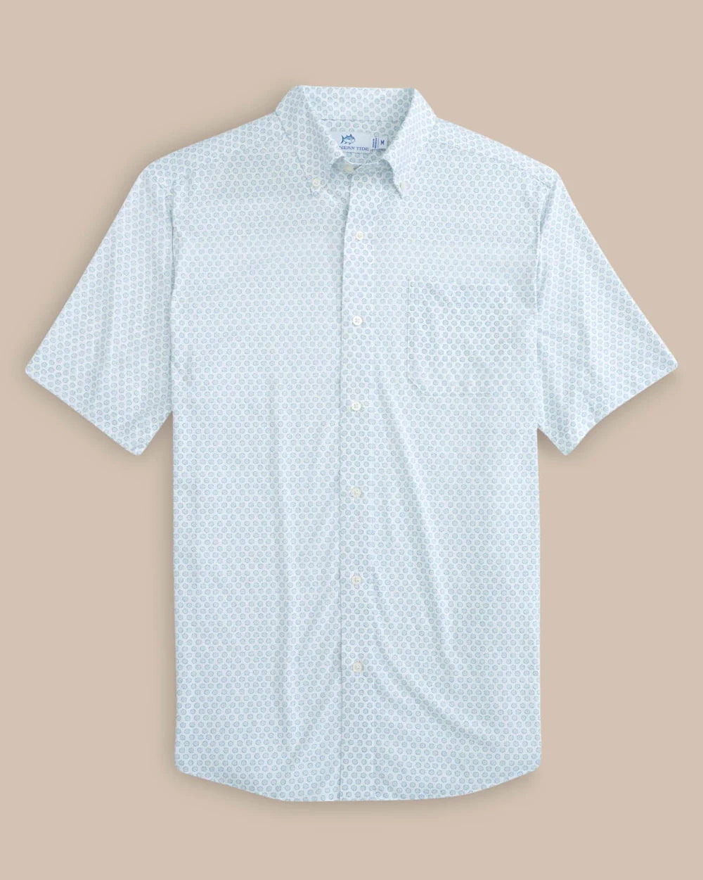 Introducing the Southern Tide Brrr Intercoastal Floral To See Sport Shirt, a stylish and comfortable shirt perfect for any occasion. This shirt features a captivating micro floral print and is crafted with brrr° cooling technology to keep you cool and comfortable all day long. It has a relaxed fit and a single chest pocket, making it a versatile addition to your wardrobe.
