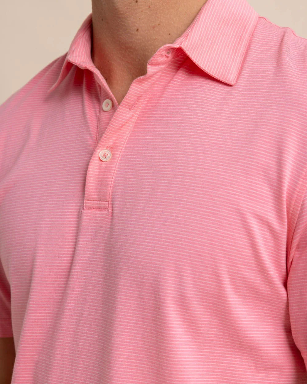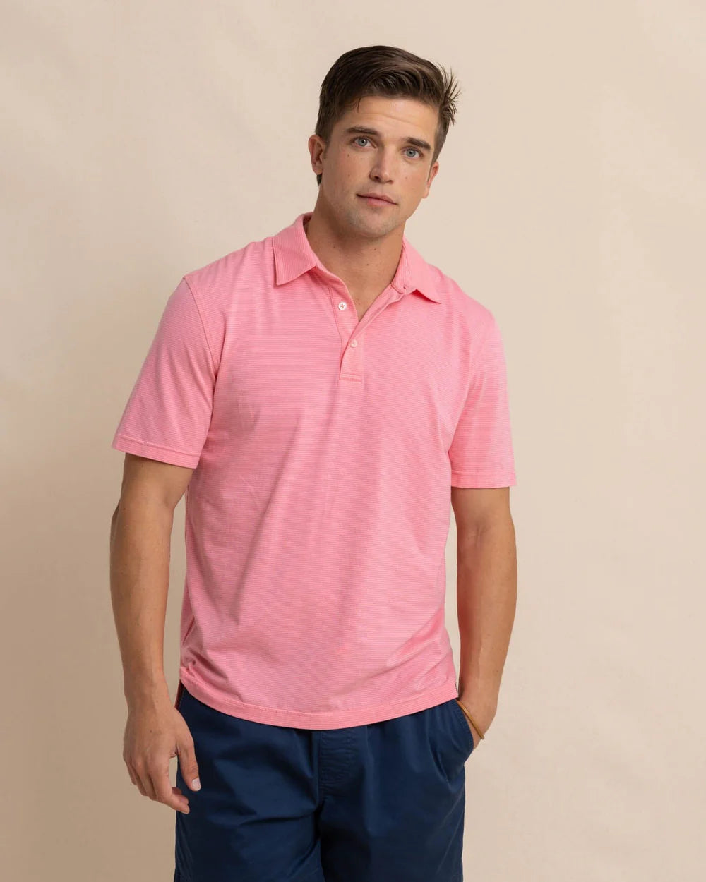 Sun-washed spring colors pair with a simple stripe to bring the sea and season together. This classic short-sleeve polo shirt features a 3-button placket and drop-tail hem for the perfect fit at parties or the pier.