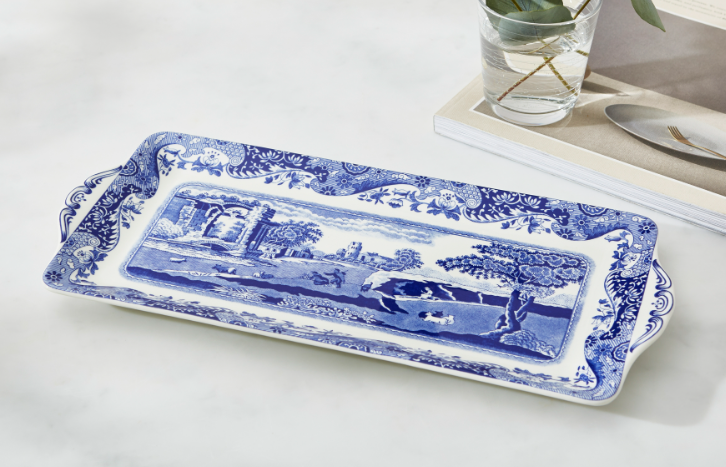This Blue Italian sandwich tray from Spode is the perfect shape for serving sandwiches and snacks for your family or to accompany an elegant afternoon tea setting. The sandwich tray features a finely detailed 18th century Imari Oriental border encompassing a stunning scene inspired by the Italian countryside. Crafted for modern day living, this piece is dishwasher, microwave, freezer and oven safe.