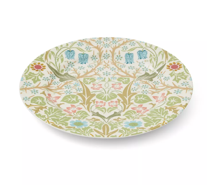 Set your table with the iconic patterns of Morris & Co. with this set of four mix-and-match plates from Spode. Each 9 inch plate is adorned with a different heritage pattern; Fruit, Willow, Strawberry Thief and Marigold, taken from Morris & Co.’s archive and showcased in beautiful shades of green, yellow, and pink. The soft hues and all-over patterns offer a fresh maximalist style for your table. Use them alone when serving lunch, or alongside the Standen dinner plates for a breath-taking tablescape.