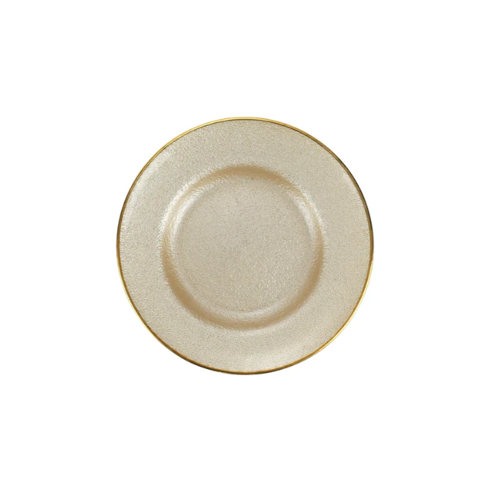 Metallic Glass is a dynamic collection that is at once timeless and modern. With a beautiful, molten effect, each piece is rimmed in gold and instantly elevates any table setting. The Metallic Glass Salad Plate exudes timeless glamour and is made to be mixed and matched with other Metallic Glass pieces.
