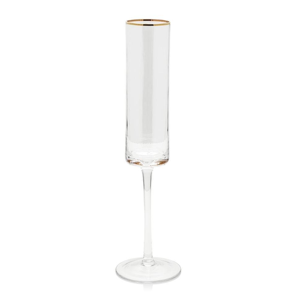 Expertly crafted with a stunning gold rim, the Zodax Optic Champagne Flute elevates your drinking experience. Sip in style and elegance with this luxurious and high-quality glassware. Perfect for special occasions or everyday indulgence, this flute is a must-have for any champagne lover.